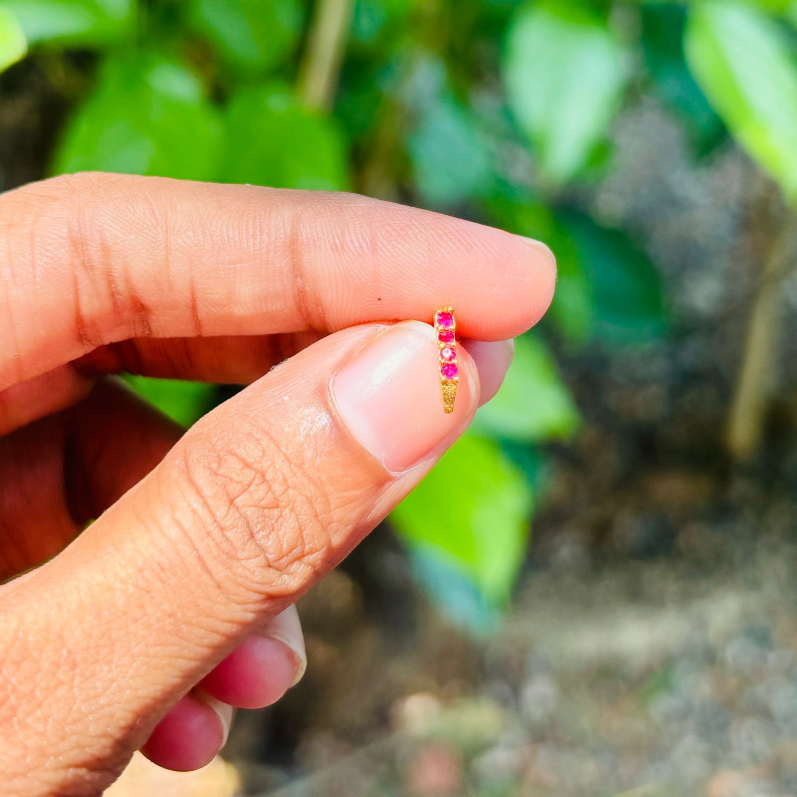 Elegant ruby nosepin featuring a classic floral design. Lightweight, skin-friendly, and perfect for adding a touch of tradition to your look.”